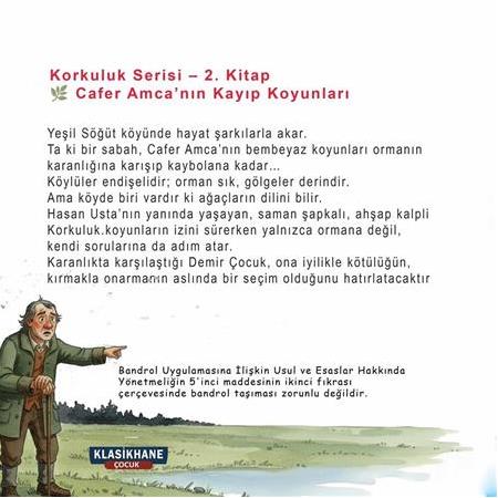 Korkuluk Serisi – Cafer Amca’nın Kayıp Koyunları, çocuklara empati kurmayı, doğru seçimler yapmayı ve zor anlarda bile iyiliği tercih etmenin değerini anlatan sıcak, derinlikli ve düşündürücü bir hikâye sunar. Küçük okurlara büyük hayat dersleri veren bu eser, serinin en etkileyici maceralarından biridir.